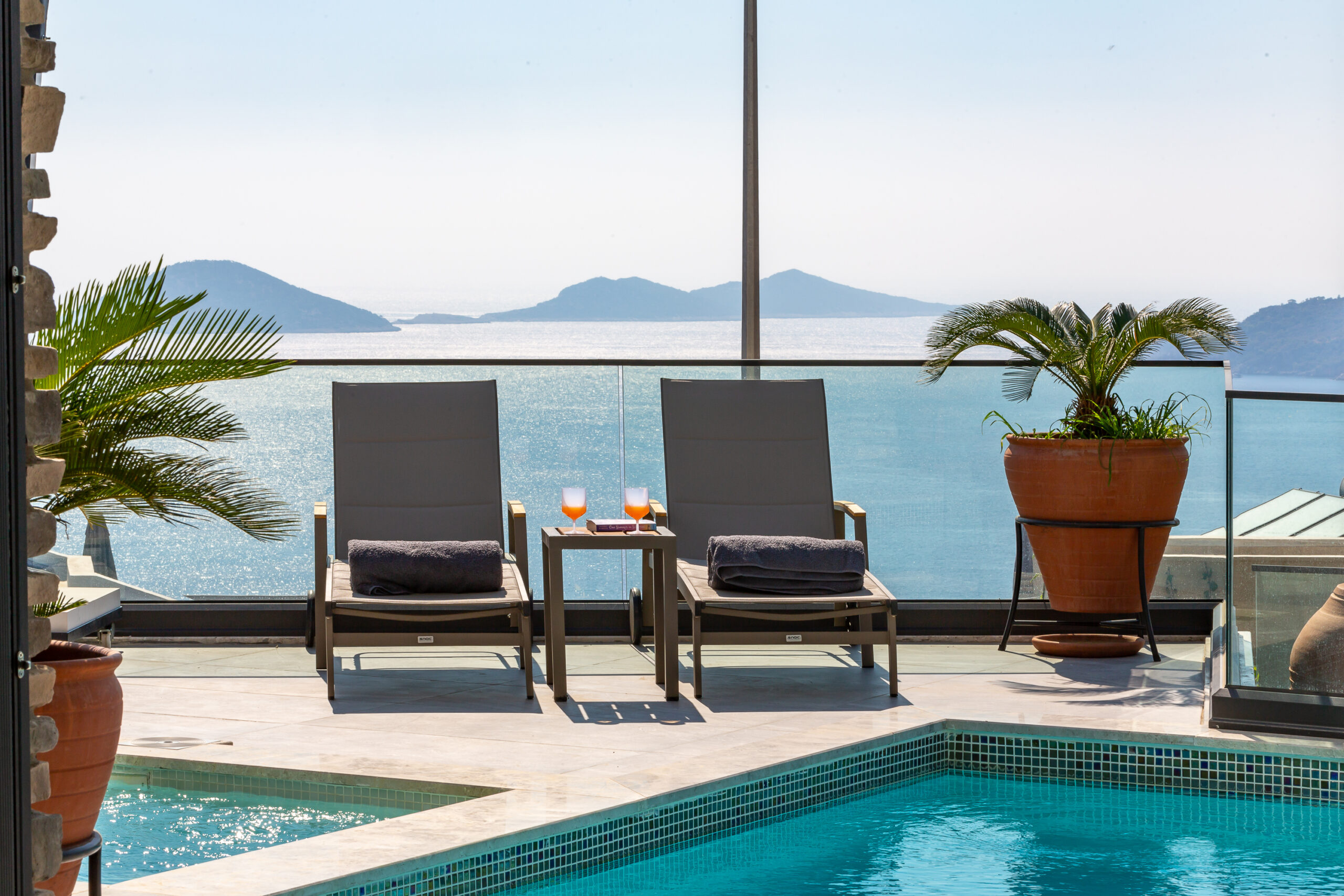 Walking to the front of the Villa, you are met with breath taking sea views and a spacious pool deck to enjoy.